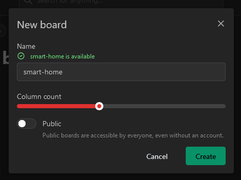 Names of boards must be unique because this will be used in the URL to load the desired board.